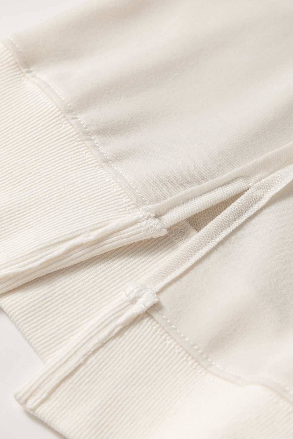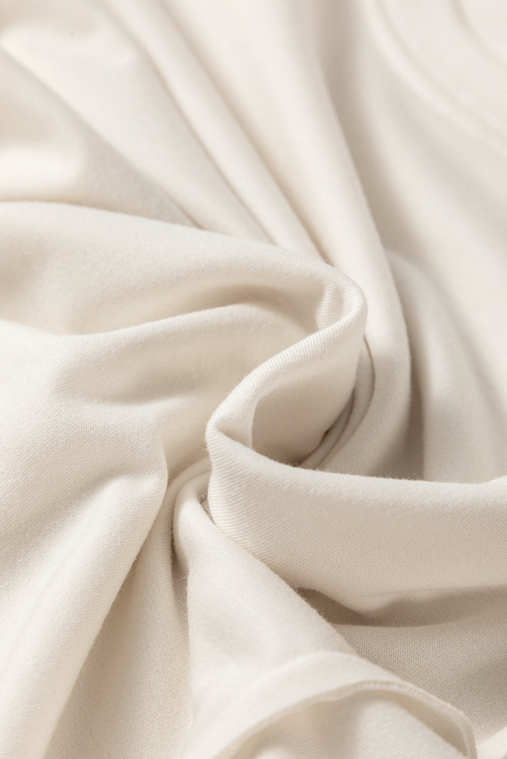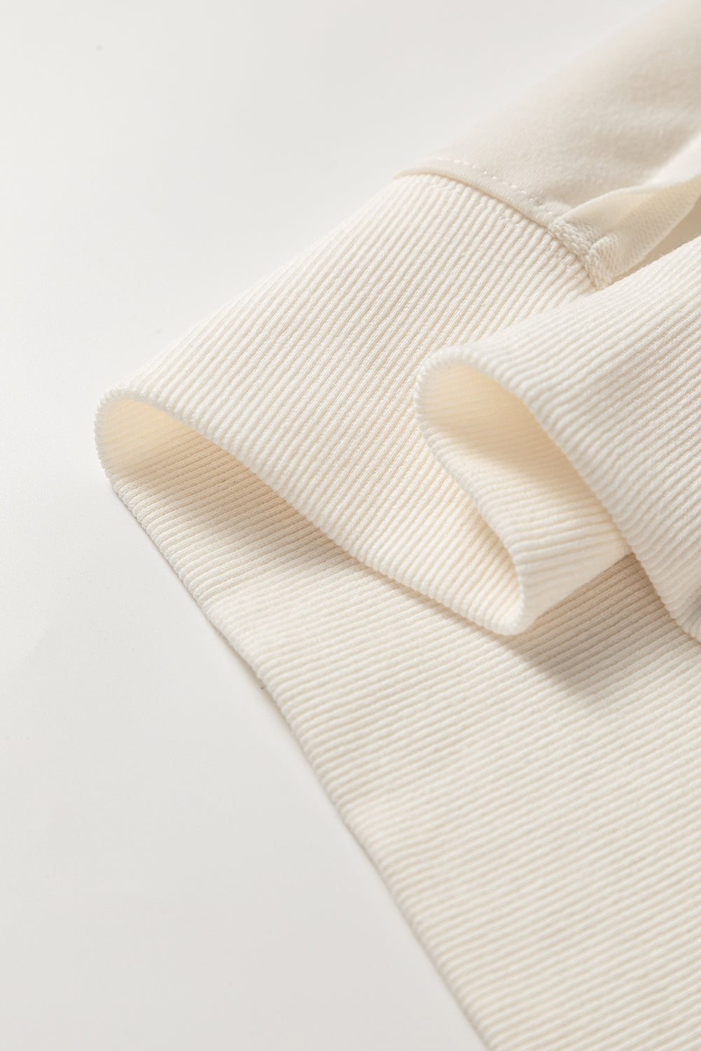 Beige Contrast Plaid Long Sleeve Exposed Seam Patchwork Top